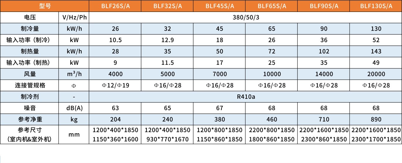 Tato jednotka se vyznačuje rozděleným designem se stojací vnitřní skříní a venkovní jednotkou složenou z jednoho nebo více venkovních modulů. Je k dispozici ve dvou hlavních modelech: jednoduché chlazení a chlazení a topení. Model chlazení a topení může být volitelně vybaven pomocným elektrickým ohřevem. Všechny jednotky se mohou pochlubit vynikajícím výkonem, nízkou hlučností, snadnou instalací a spolehlivým provozem a lze je také připojit ke vzdálenému monitorovacímu systému s automatickou detekcí poruch a funkcemi alarmu.